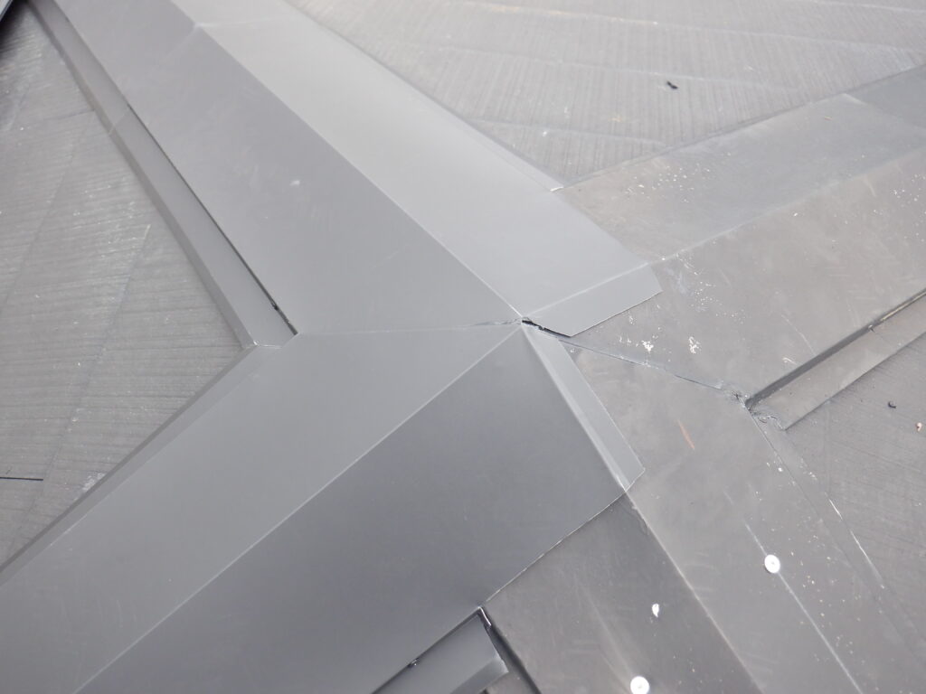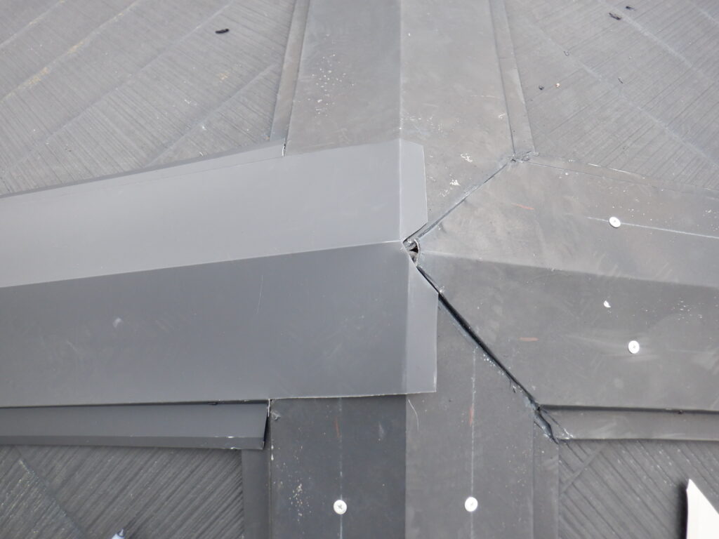 私が棟工事で一番好きな時間はこういう三又や四又の集合している部分をやる時で、真ん中の棟芯が全部合わさった時、脳汁ブシャーーーになりやめられません(笑)でも、今回は既存棟かぶせなので下地通りにしかならないのでちょっとだけズレてるのが気になりながらもやっていきます。